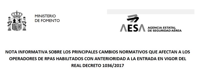 Ya llevamos 6 meses desde que se publicó en el BOE el Real Decreto 1036/2017, de 15 de diciembre, por el que se regula la utilización civil de las aeronaves pilotadas por control remoto y todavía son muchas las dudas y lagunas que plantea la nueva ley, así como los cambios que ha supuesto sobre … Sigue leyendo Novedades sobre la nueva ley de drones 2018